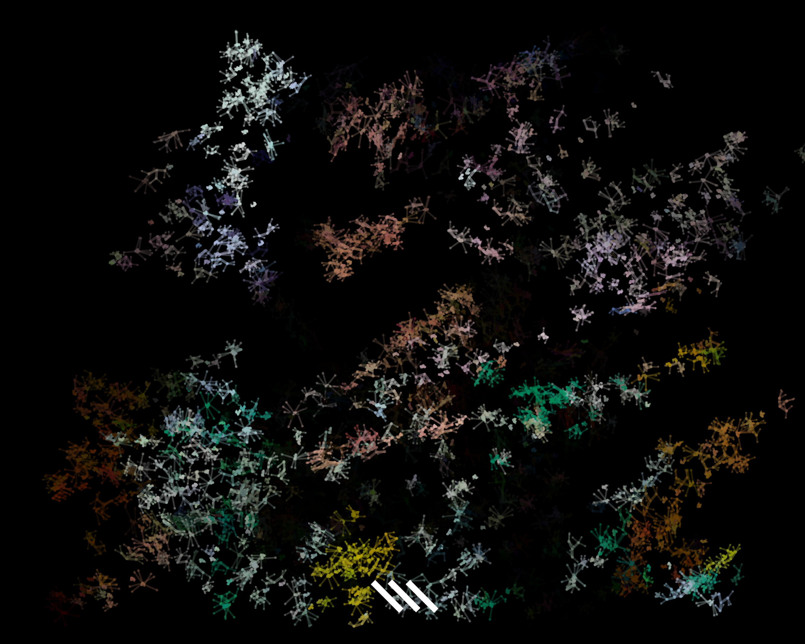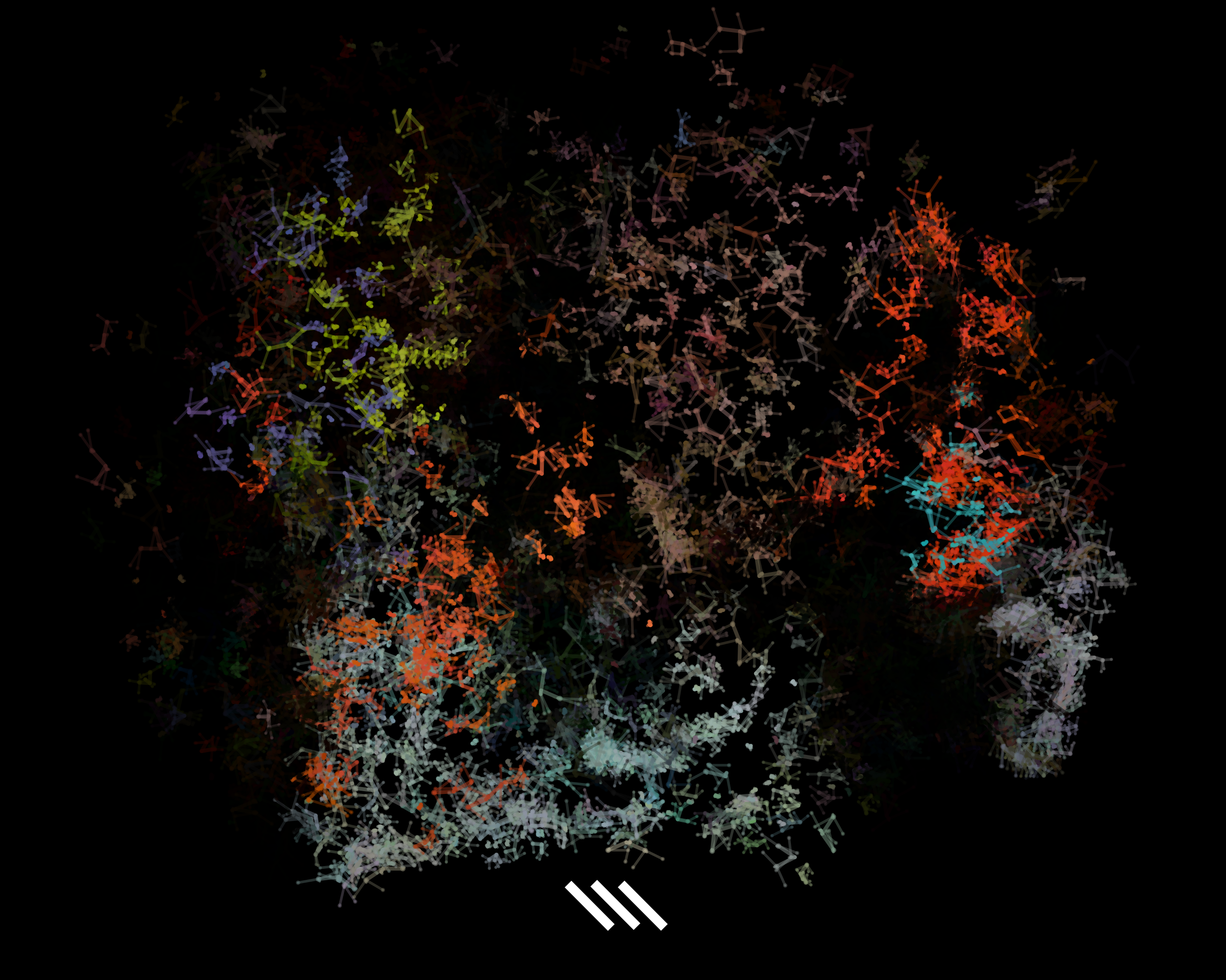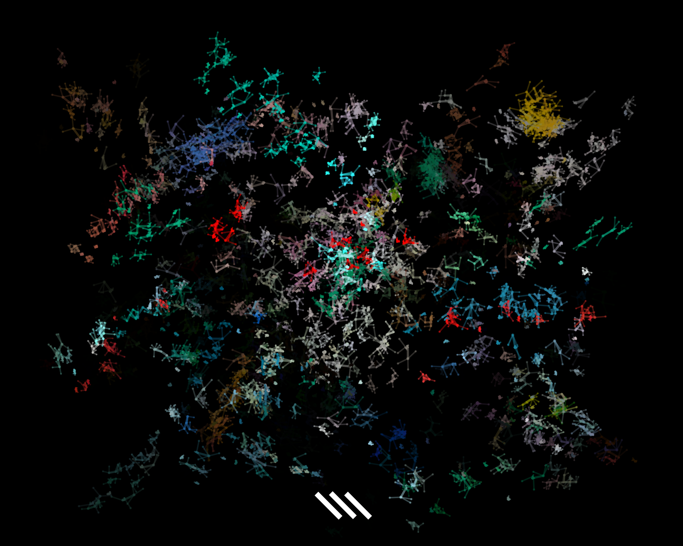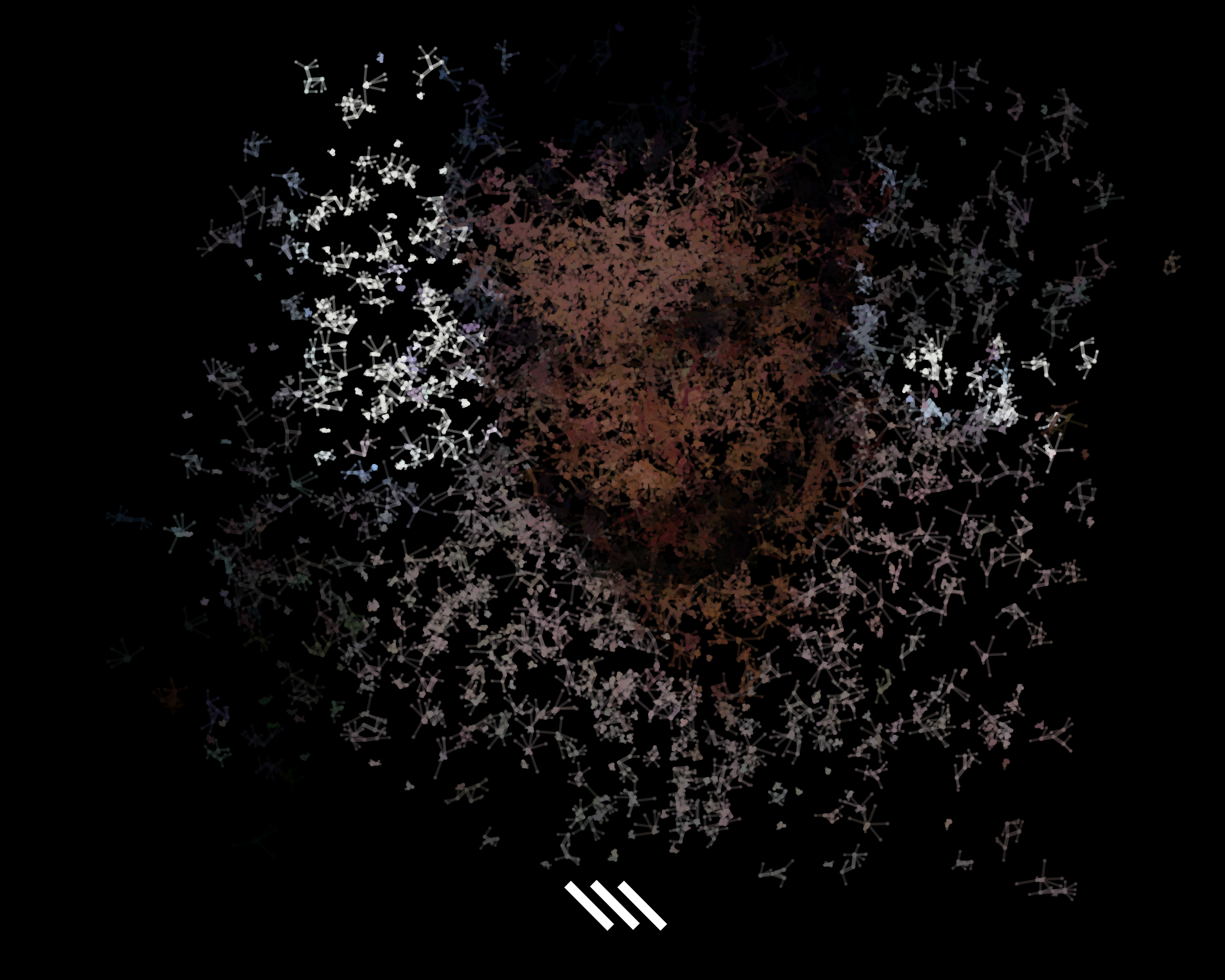 Depois pequenos elementos, que se distinguem em forma e cor, salpicam o ecrã, o ecrã que tu fitas. Antes de estares lá o ecrã continuava escuro. Se te moveres, os salpicos de cor mudam de coordenadas, festejam a sua vitalidade noutro local do ecrã (escuro). Se te moves demasiado depressa, os salpicos sessam por completo, apenas para voltar, numa outra área, com intenções que se repetem, com intenções que tu conheces. Talvez se forme a ideia no teu cérebro, talvez se forme a ideia de parar. Pára. Fica estático, observando em silêncio, o que os pequenos salpicos amorfos estão a fazer. O que estão a construir, pesadamente, em intervalos de tempo sempre iguais, um dos três quatro, numa dança aparentemente aleatória.