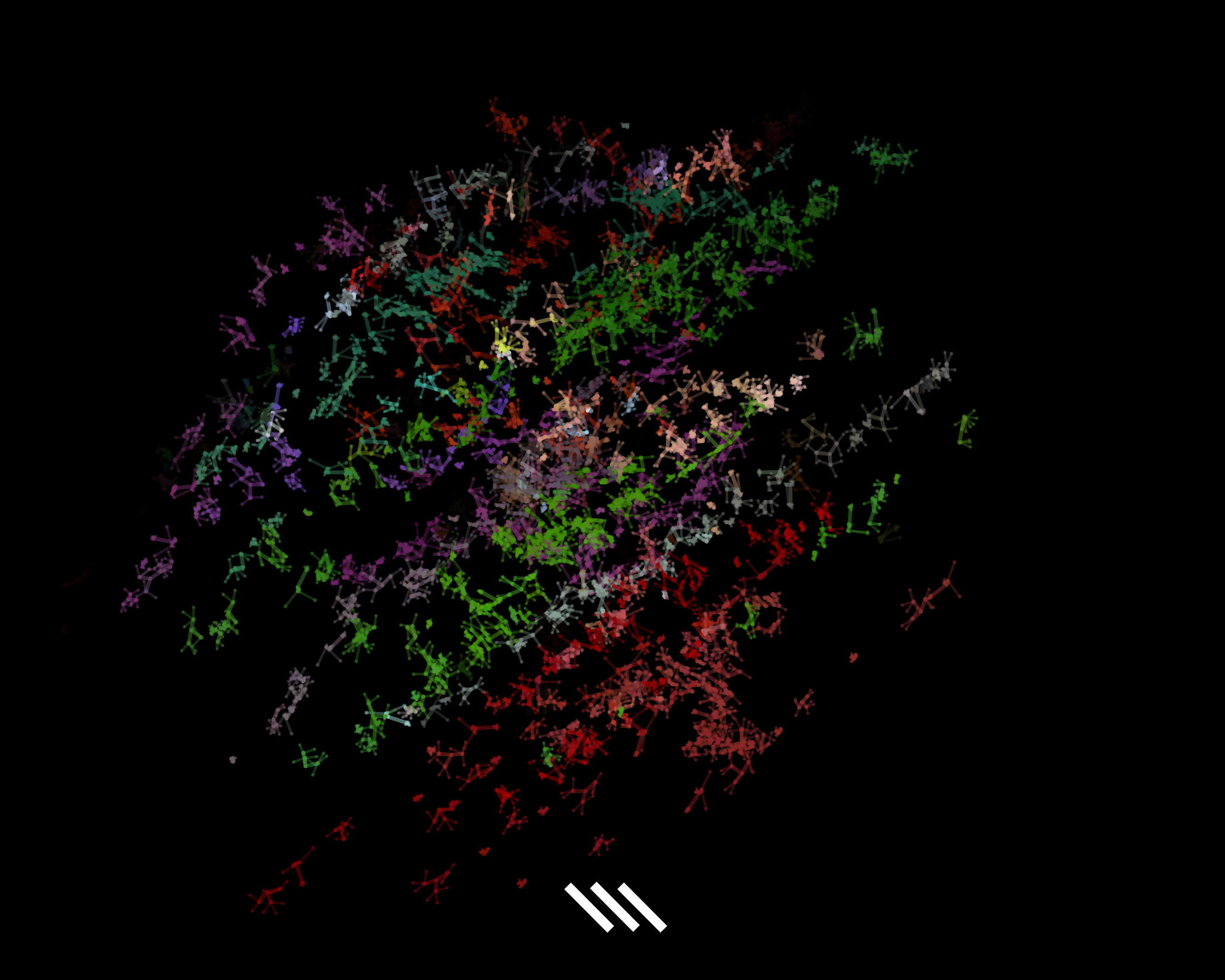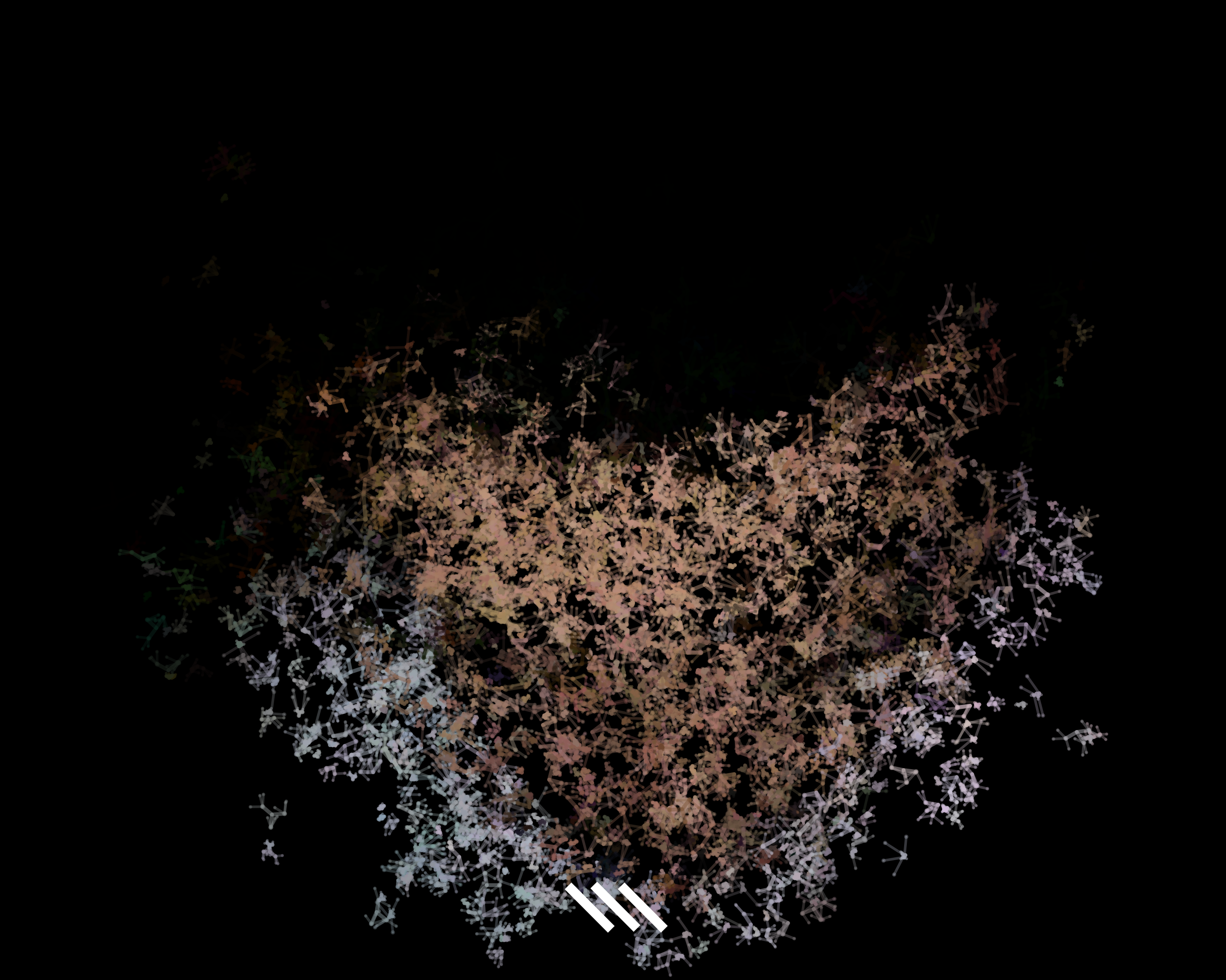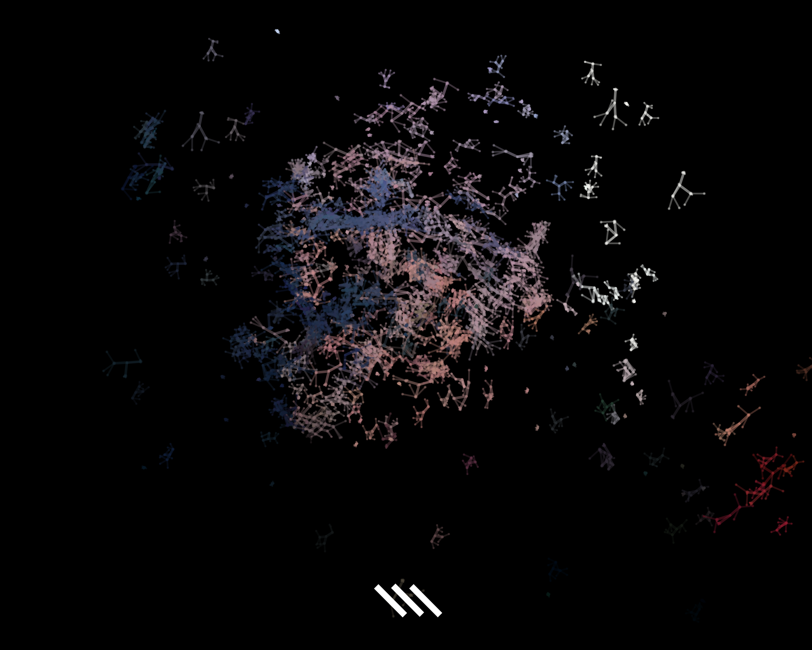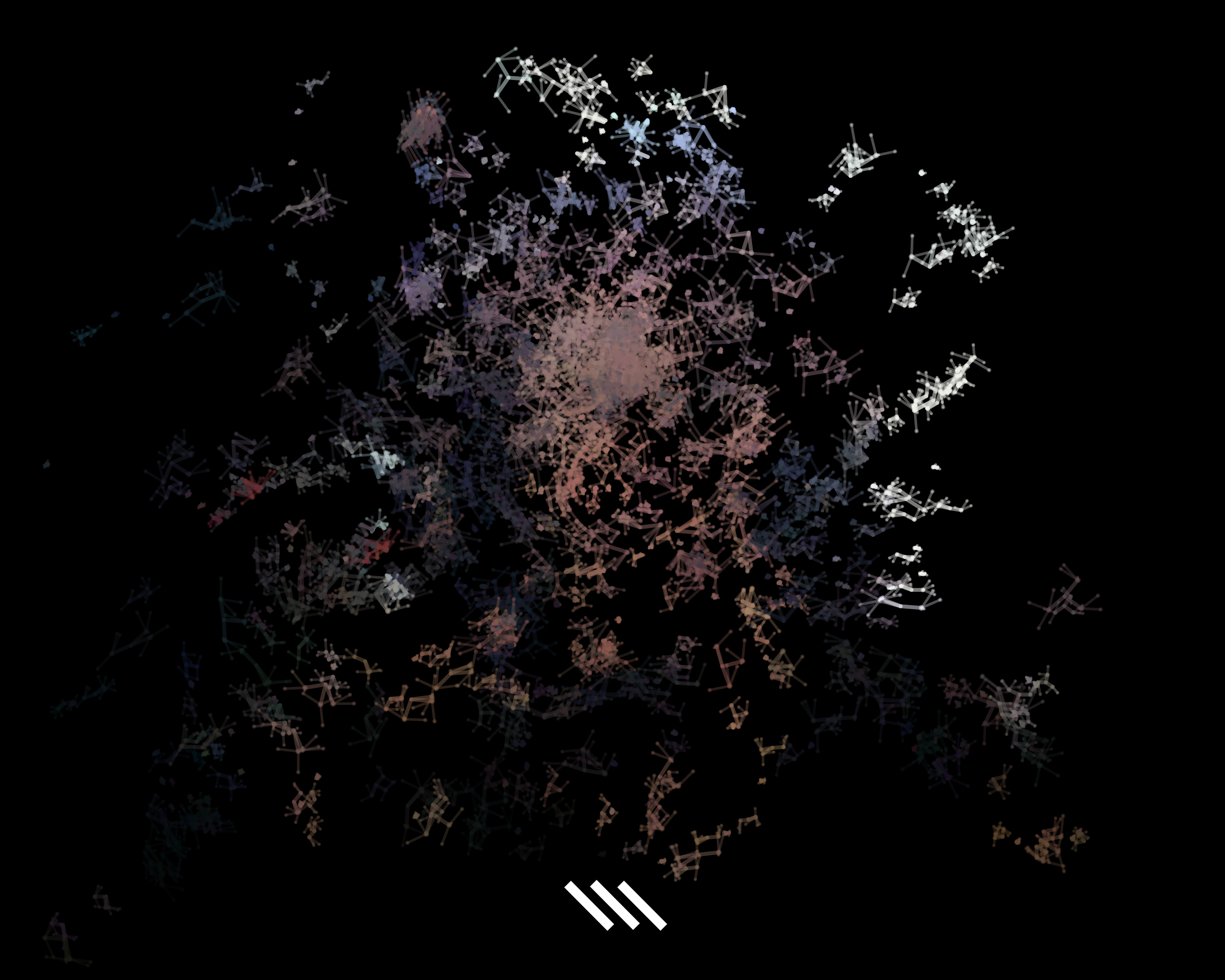 Depois pequenos elementos, que se distinguem em forma e cor, salpicam o ecrã, o ecrã que tu fitas. Antes de estares lá o ecrã continuava escuro. Se te moveres, os salpicos de cor mudam de coordenadas, festejam a sua vitalidade noutro local do ecrã (escuro). Se te moves demasiado depressa, os salpicos sessam por completo, apenas para voltar, numa outra área, com intenções que se repetem, com intenções que tu conheces. Talvez se forme a ideia no teu cérebro, talvez se forme a ideia de parar. Pára. Fica estático, observando em silêncio, o que os pequenos salpicos amorfos estão a fazer. O que estão a construir, pesadamente, em intervalos de tempo sempre iguais, um dos três quatro, numa dança aparentemente aleatória.